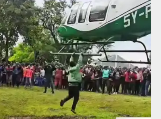 A video circulating on TikTok captured him dangling beneath the aircraft as it ascended, only for the pilot to make an emergency landing in a nearby farm to drop him safely amid maize and banana plants.