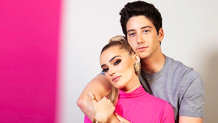 Meg Donnelly and Milo Manheim pose together during HL’s exclusive portrait session. (Paige Kindlick)